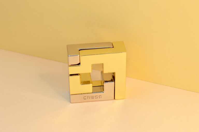 角が多いピースだがするりと抜けていく。タテ・ヨコ・ナナメ、そして回転の動きをうまく使って解いてほしい。