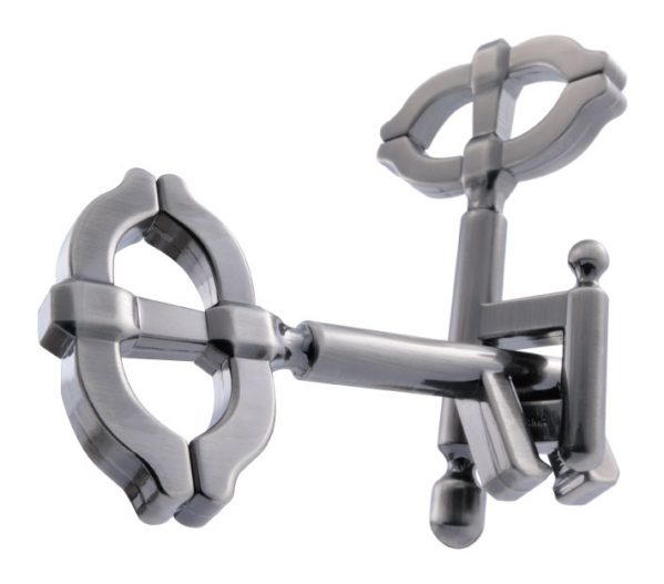 2本の鍵が外れそうもないように組み合っているのを外すはずるです。シンプルだけどちょっとしたトリックも含んでいるのでいます。力ずくで動かすことのないようにお願いします。