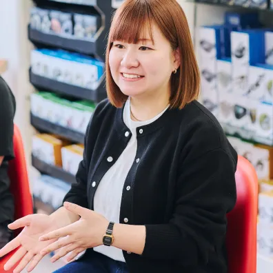 商品企画・開発を担当し、新商品提案から量産までを一貫して担っています。会議でアイデアを出し合い、議論を経て商品化を決定。その後は市場調査や仕様設計、資材選定を行い、海外工場と連携して形にしていきます。