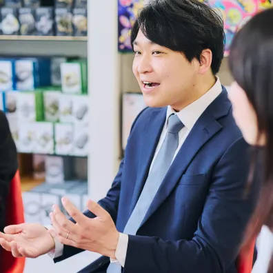営業として問屋や小売店を訪問し、シーズンごとの主力商品や販促企画を提案しています。繁忙期だけでなく、閑散期にも“思わず手に取りたくなる売り場づくり”をテーマに、展開方法や販売計画を共に考えます。成功事例を横展開するなど、数字に基づいた再現性のある提案も重要な役割です。